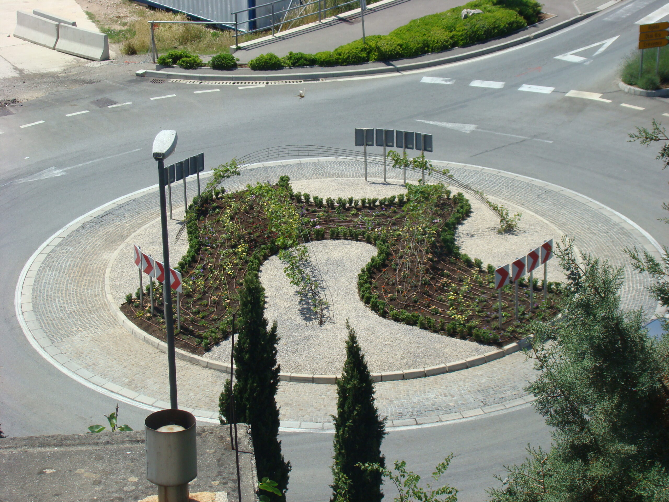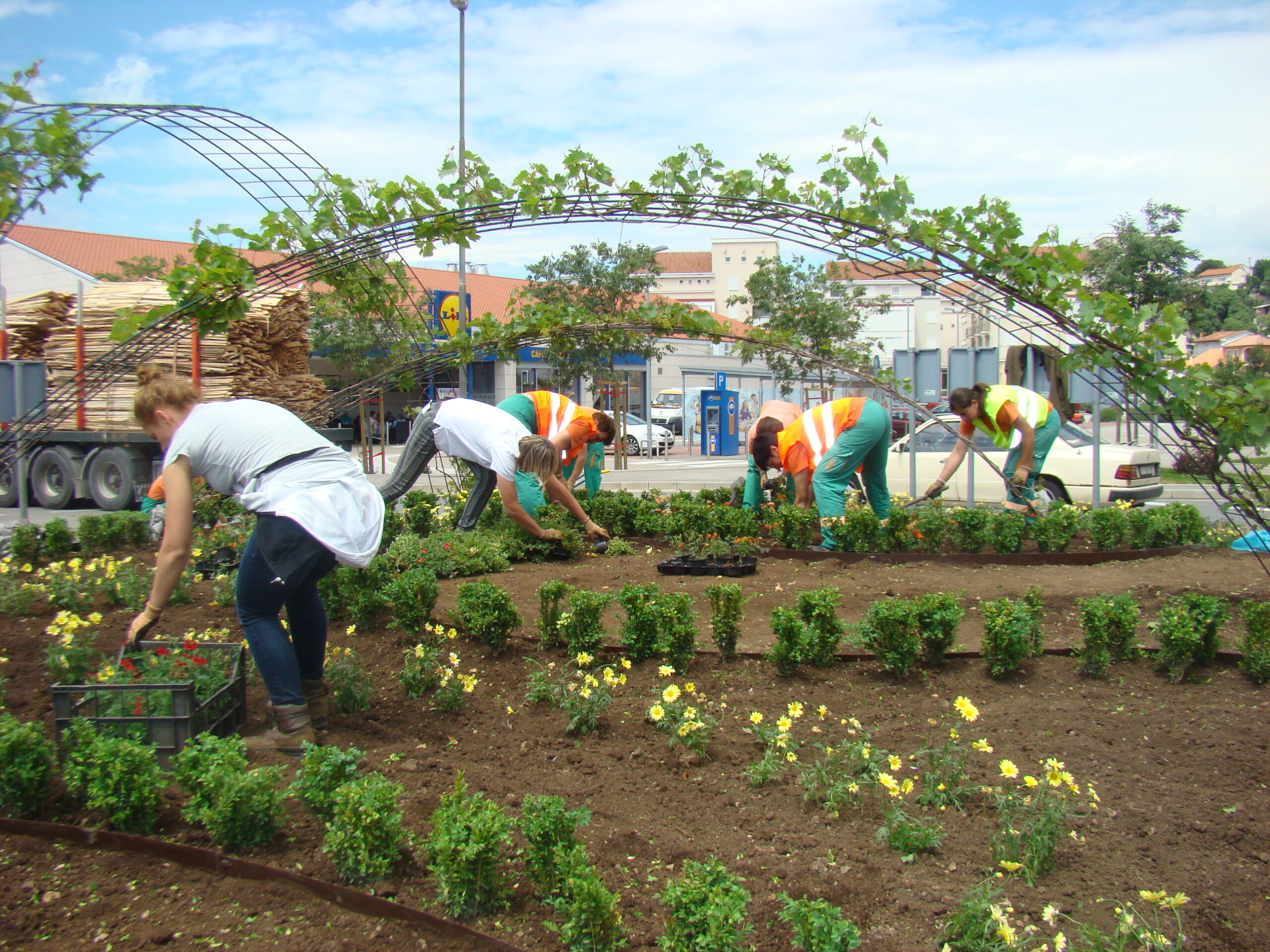 Kako bi se unijelo malo noviteta i smanjili troškovi održavanja zelenih površina krenulo se u malu rekonstrukciju središta kružnog toka.  Smanjila se površina cvjetne gredice za 50 %, a time su i troškovi održavanja smanjeni za isti postotak. Cvjetna ploha omeđena je zimzelenom živicom po lokalnom nazivu MALA GORA, uvriježen hrvatski naziv je šimšir –lat. Buxus sempervirens. To je vrsta koja se u Novom Vinodolskom koristi kao dio narodne nošnje, a u svom vrtu ima je svaki Novljanin.  Vanjski dio od živice do prometnice prekriven je protukorovnom zaštitom i sitnim drobljencem.