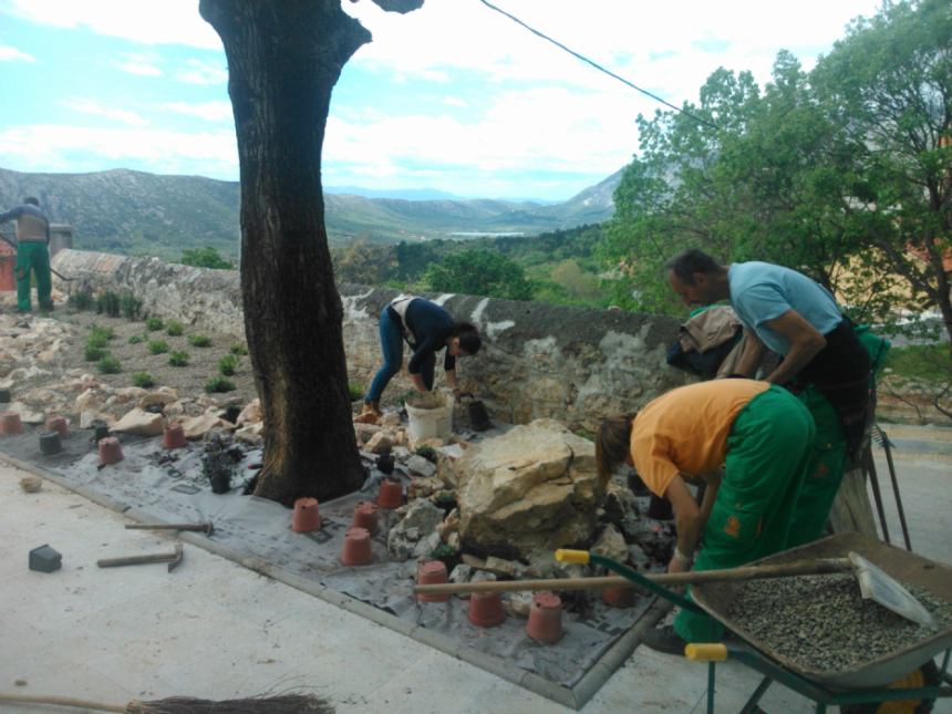 U Grižanama uz staru školu, danas Kuća Klović uređena je zelene površina.