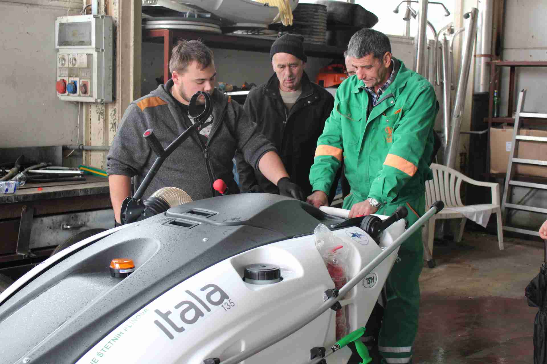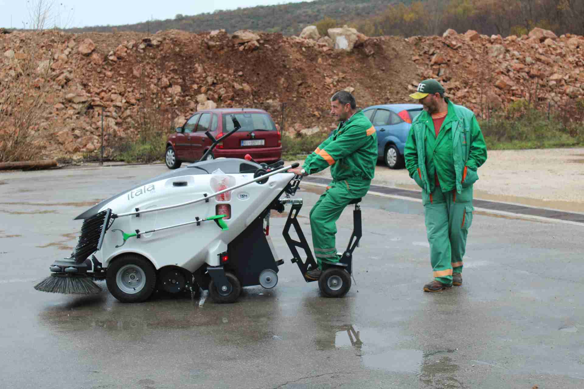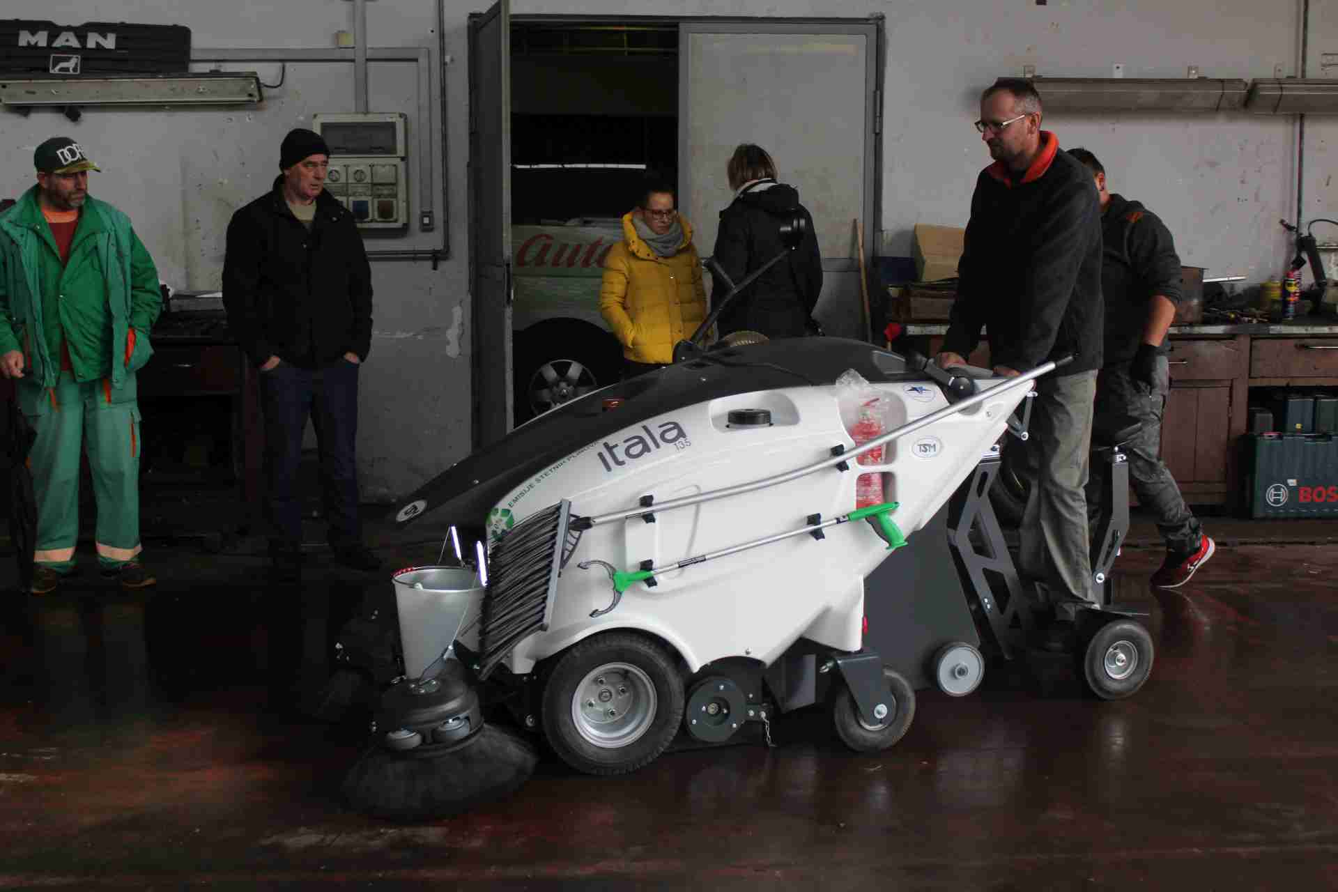 Čistilica Tip: ITALA 135 je izvanredna za čišćenje uskih ulica i pločnika. Uvelike olakšava i ubrzava rad čistača. Baterijski pogon čini ju vrlo tihom, te pogodnom za čišćenje u gusto naseljenim zonama grada. Nema ispuštanja štetnih plinova. Radno vrijeme jednog punjenja je osam sati.