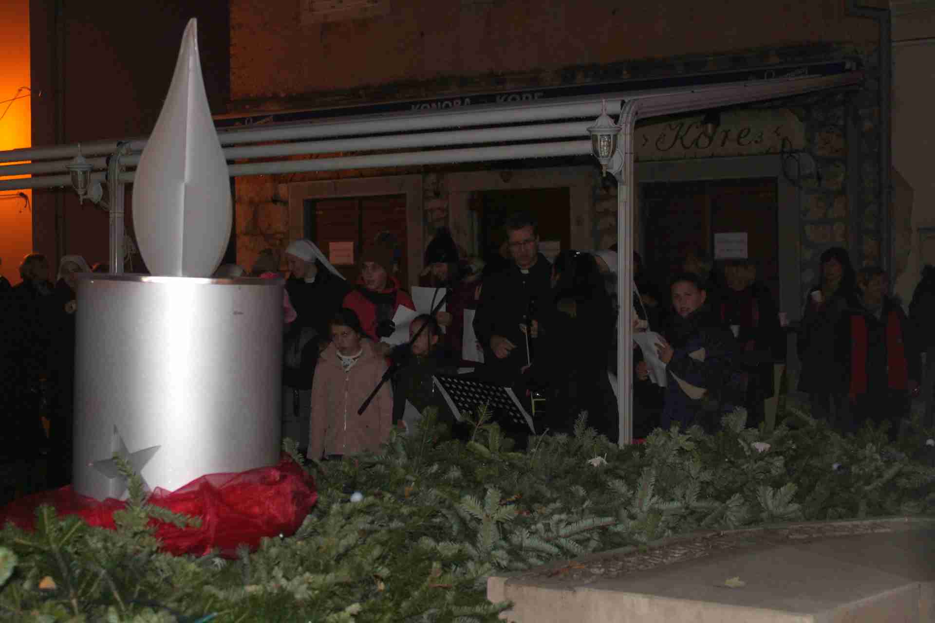 Svijeću su upalila djeca iz dječjeg zbora Sv. Male Terezije sa župnikom Hrvojem Poljakom, uz kratki program, koji se sastojao od zajedničke molitve i božićnih pjesama.